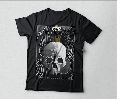 Playera negra algodón peinado (suave). Estampado en serigrafía frente 2 tintas + tinta glow dark que brilla en la oscuridad.