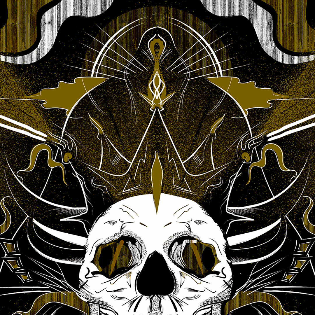 Póster impreso en serigrafia en 2 tintas. Tinta dorada (acabado semimetálico) + tinta vinil blanca mate en Papel inspira color negro en 150 gramos acabado mate, con medida de 35x50cm.